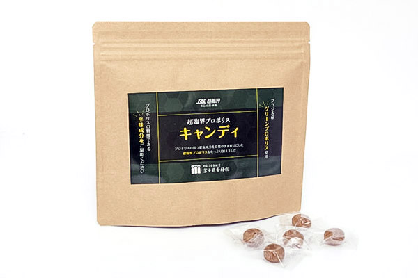 ブラジル産のグリーンプロポリス原塊を超臨界製法で抽出したプロポリスに、喜界島粗糖と国産水飴を混ぜた、まろやかでプロポリスのピリ感があるのど飴です。