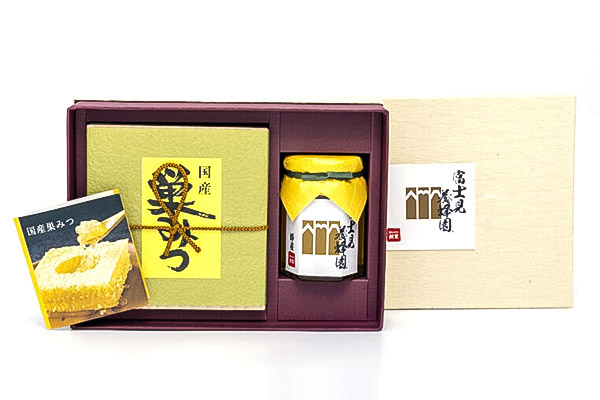 国産巣みつとミツバチが野山の草木から採取したまろやかな味わいの蜂蜜のセットです。