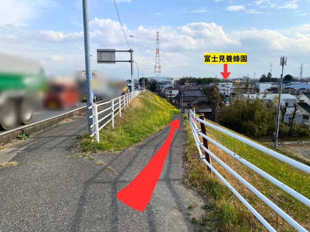 バス停「秋ヶ瀬橋」で下車後、左へお進みください。