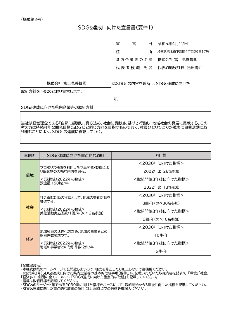 SDGs達成に向けてた宣言書(要件1)
